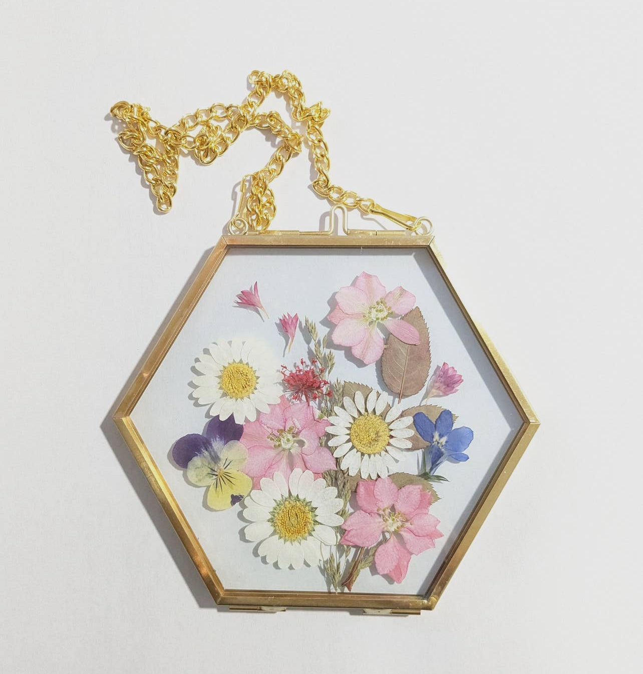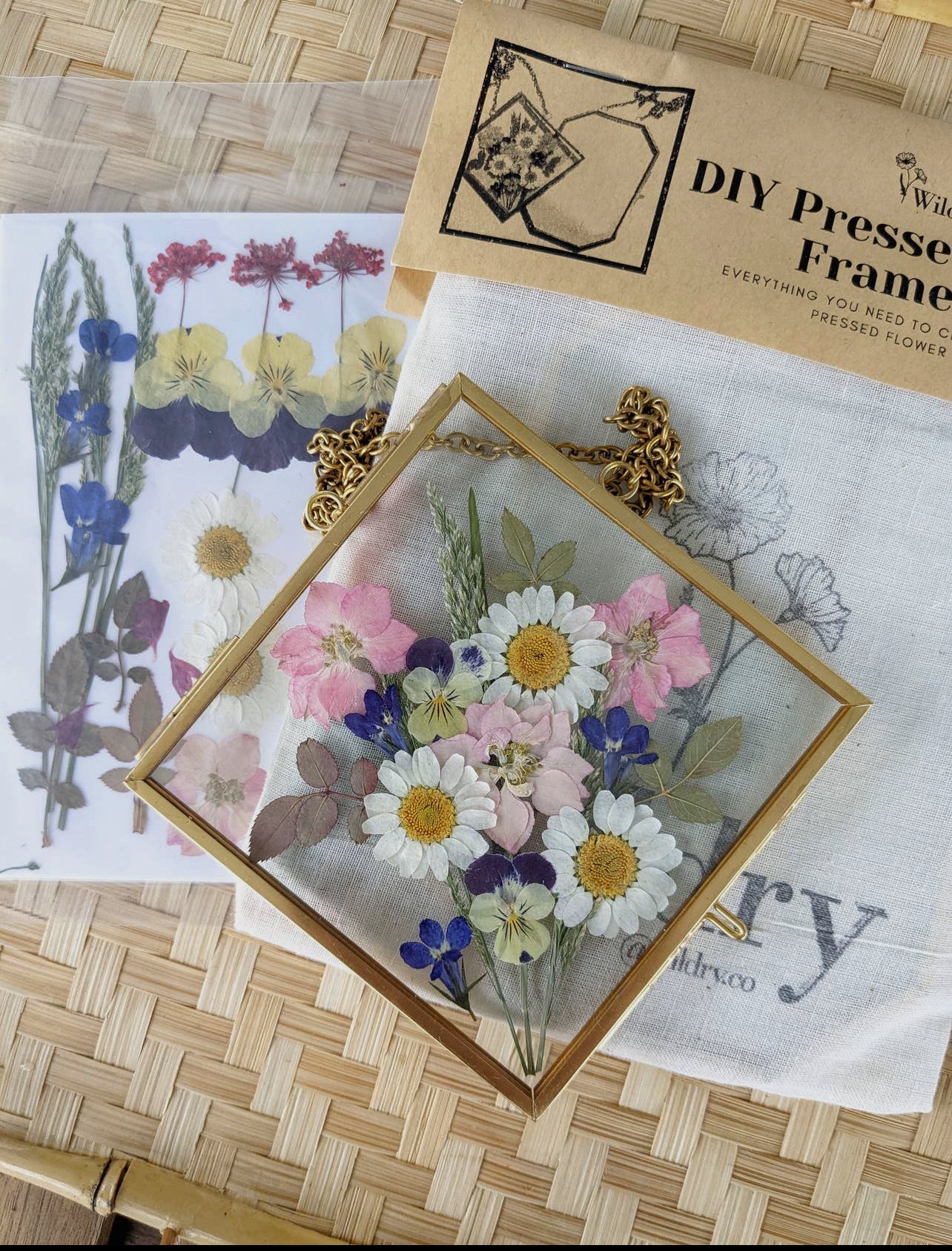 Craft a beautiful pressed flower frame to hang on your wall or give as a gift. This kit contains everything you need to create a pressed flower artwork in a vintage style brass frame.