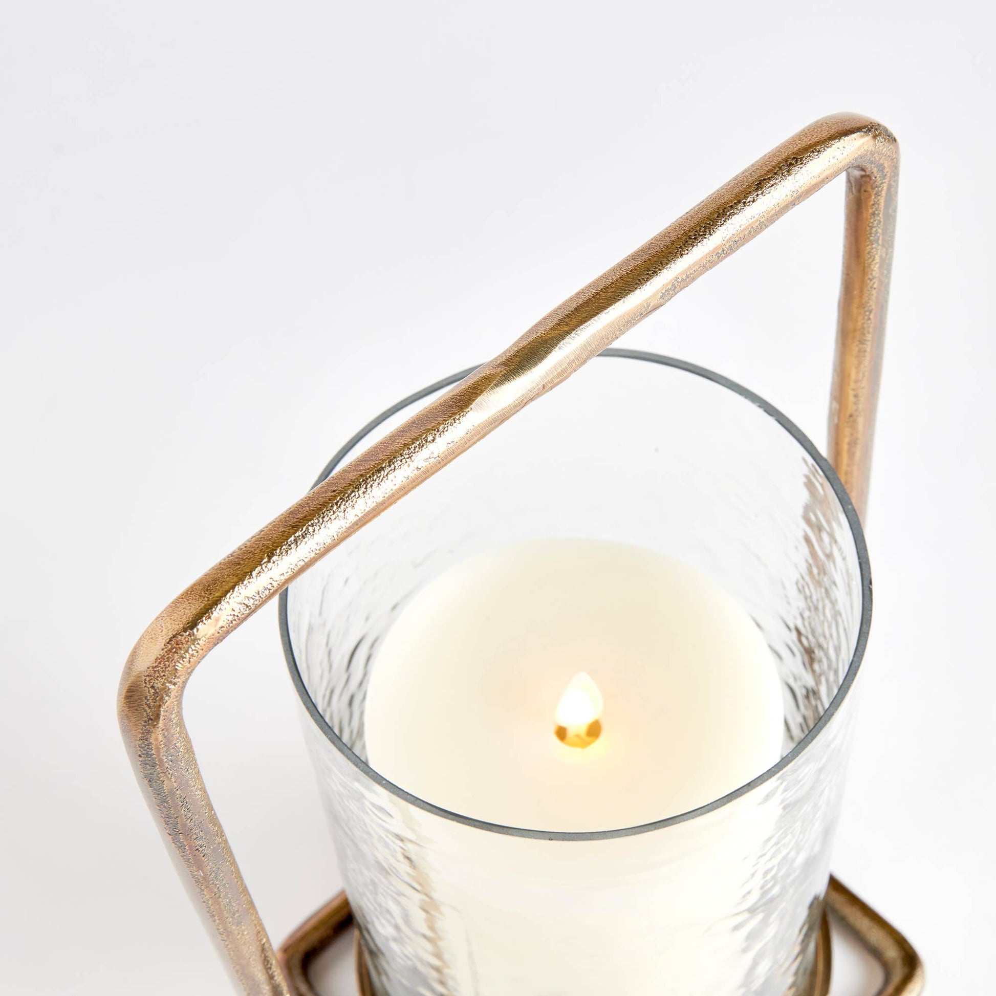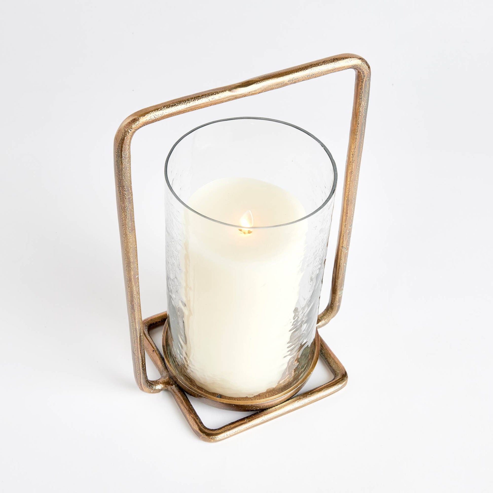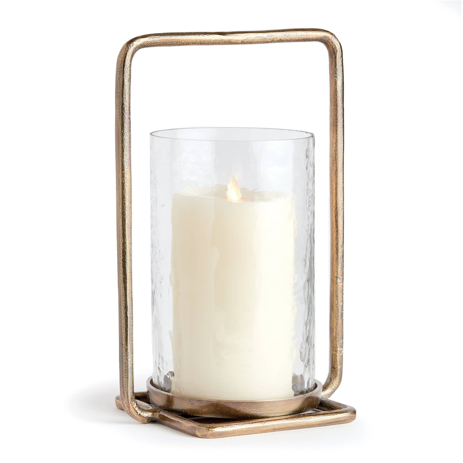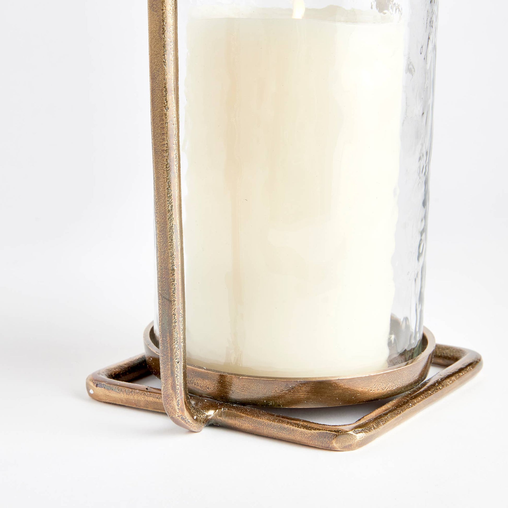 Forged handles and an all brass finish make this minimalist hurricane unique.