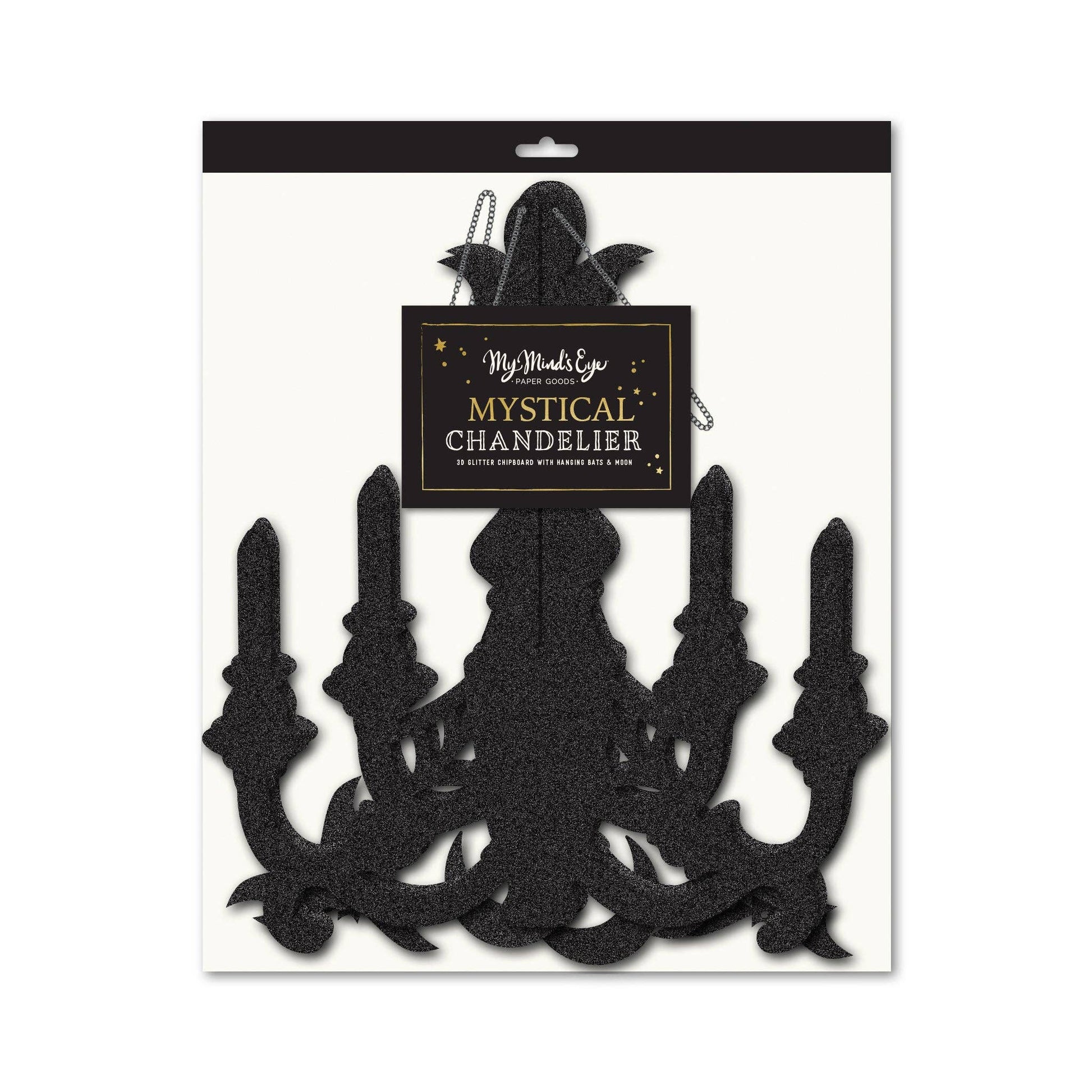 Set a frightful scene with this black glitter chandelier this spooky season. This antique inspired chandelier features black glitter with bat and moon accents that are the perfect way to make any ghoul feel right at home at your haunted house party.
