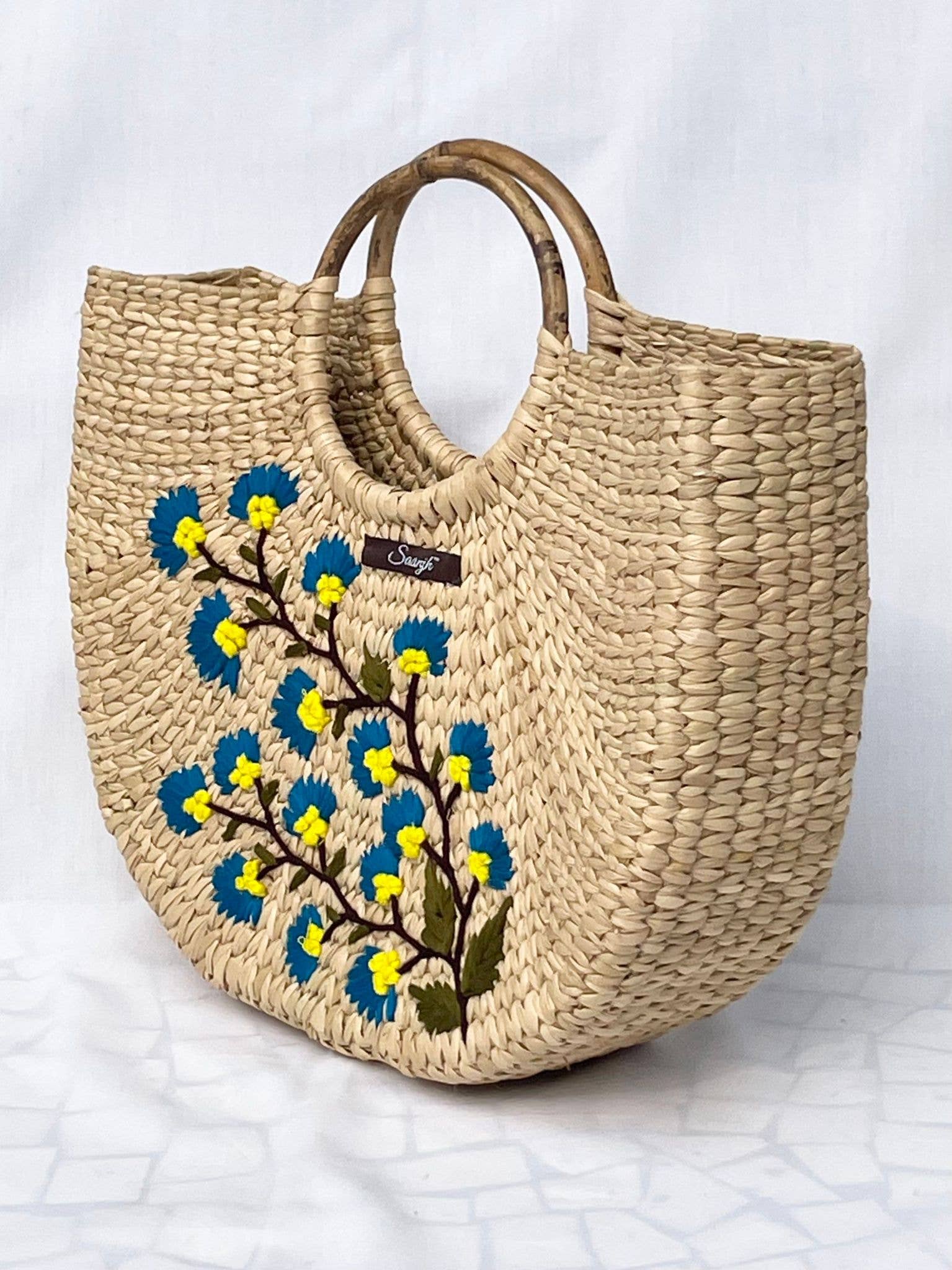 Material: Water Hyacinth / Kauna Grass: Water Hyacinth is one of the softest yet sturdiest natural fiber used for woven products. The properties of Kauna are one of a kind ~ it can take any aspired shape and form. It is non- toxic and has great heat insulation properties.
